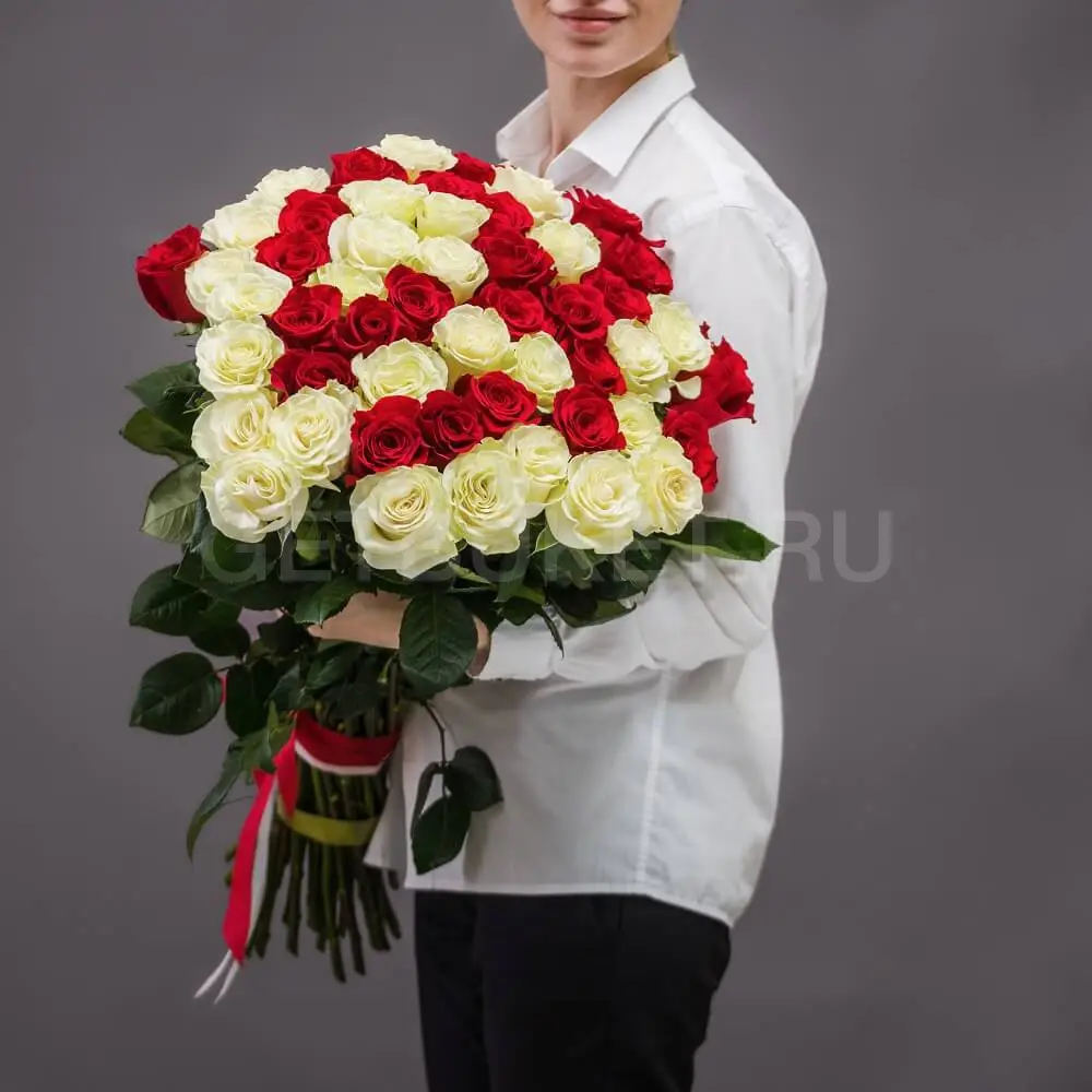 Букет из 51 красно-белой эквадорской розы